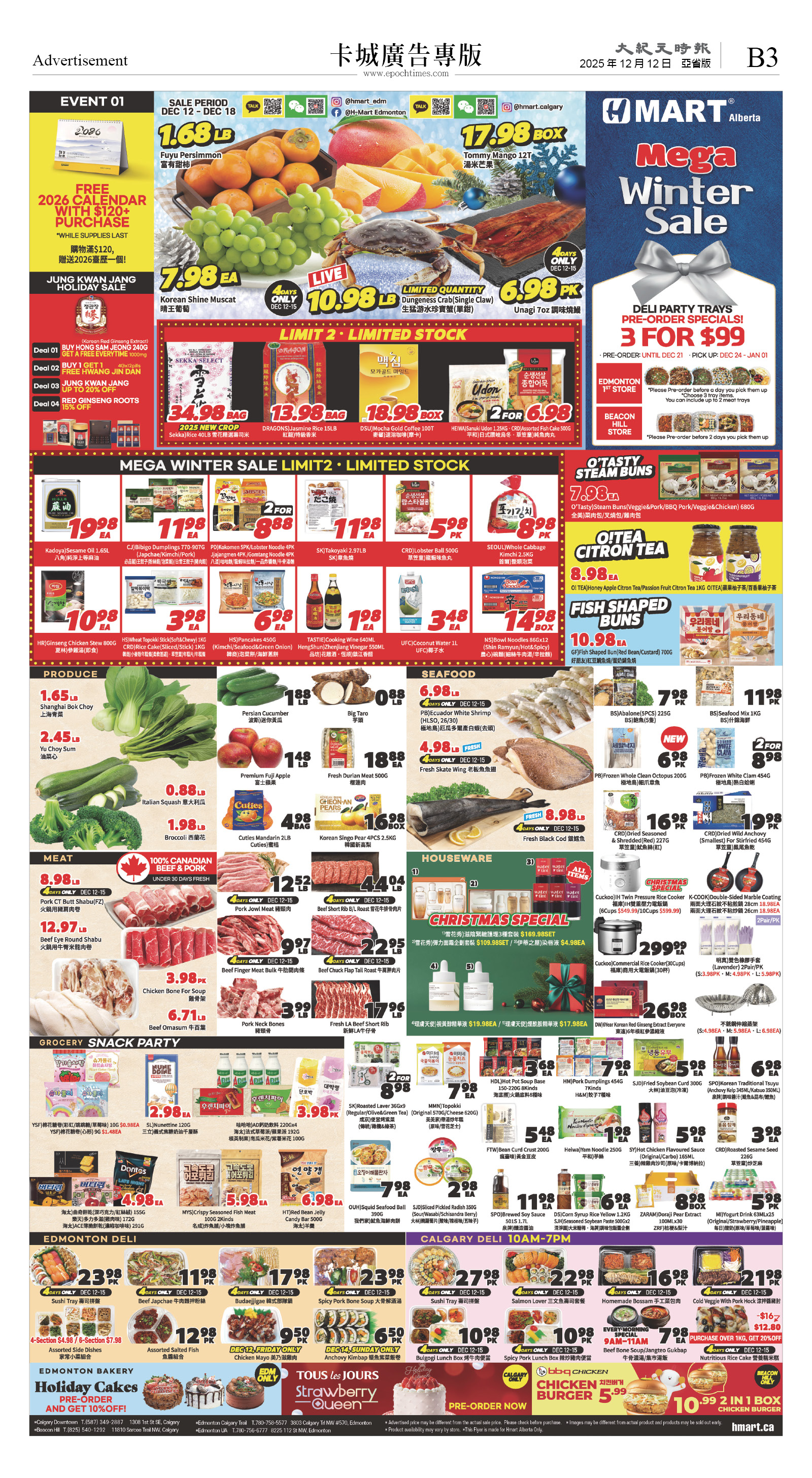 卡城/卡加利/卡尔加里最大韩国超市/北美知名韩国连锁超市/韩国日本食品/韩国料理/韩国化妆品/韩国保健品/韩国麵包蛋糕/生日蛋糕/亚洲食品/日本杂货美食/新鲜蔬菜水果/火锅肉片/鲜肉/粮油杂货/H.mart/HMart/H-mart/H Mart/Weekly Specials/每週特价货品优惠