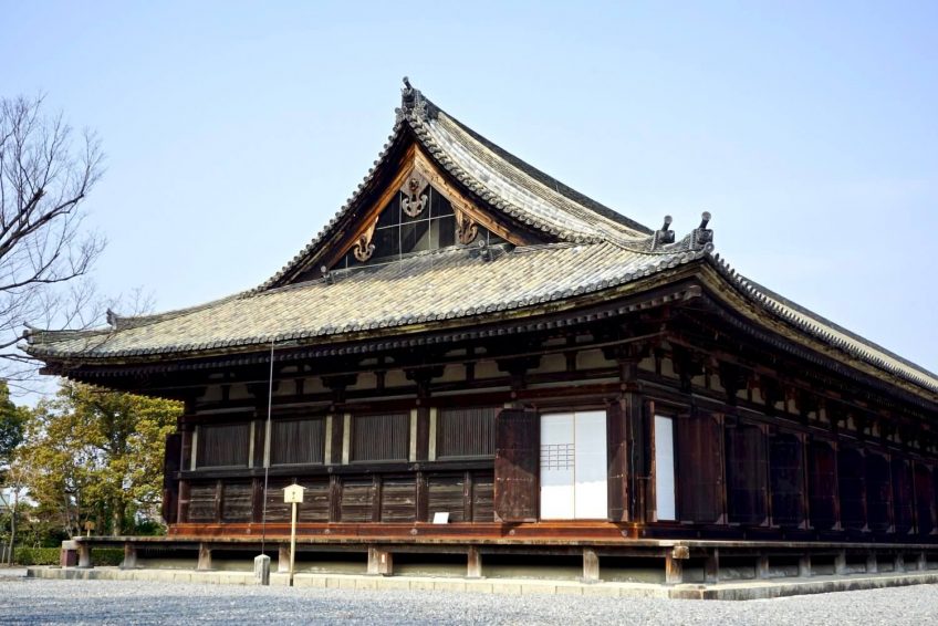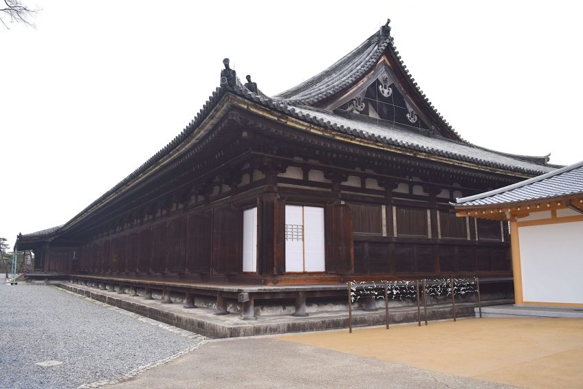 原本在陆地,后白河天皇有一个建为离宫一个法住寺寺庙。一个建在大厅,这是当前三十三间堂的一个部分其庞大的法住寺Renge国王学院大殿。