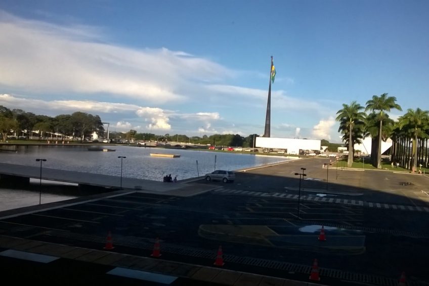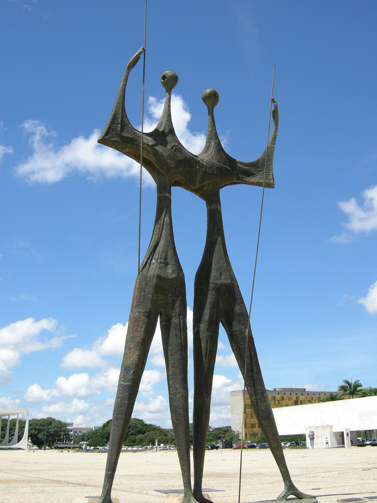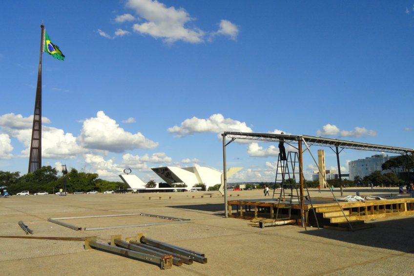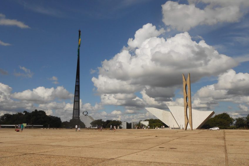 凝视着在广场上空飞行的巴西国旗。它最初是在1960年提出的,以纪念该城市成为该国的首都。该旗帜每月更换一次由士兵主持的仪式,偶尔也会由巴西总统主持。
