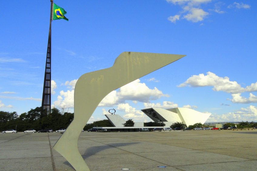 凝视着在广场上空飞行的巴西国旗。它最初是在1960年年提出的,以纪念该城市成为该国的首都。该旗帜每月更换一次由士兵主持的仪式,偶尔也会由巴西总统主持。