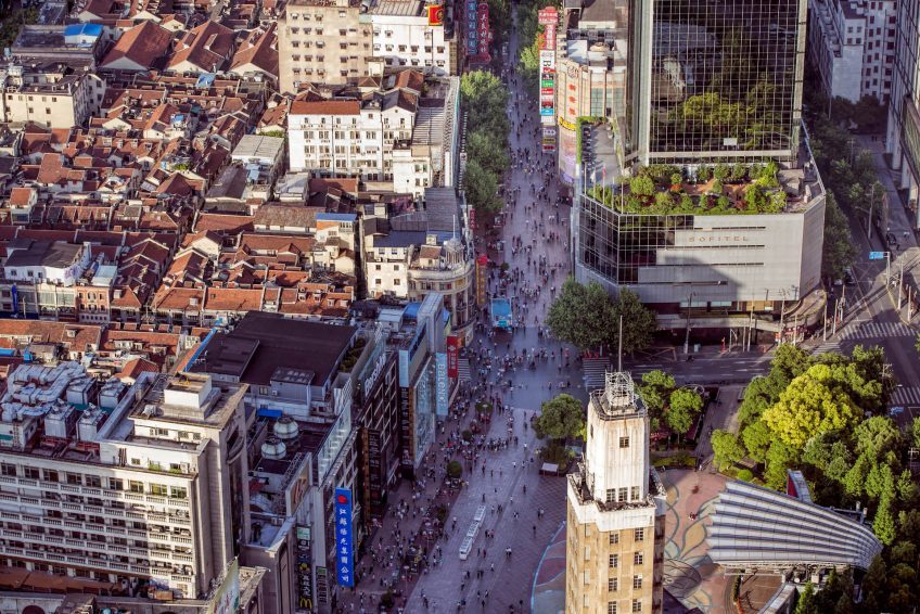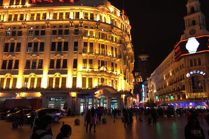 南京路和淮海路是上海最繁华的街区,素有“中华商业第一街”之誉,东起外滩,西至静安寺与延安西路交汇,全长5.5公里,两侧商厦鳞次栉比,云集着约600多家商店。西藏路以东称南京东路(原称花园弄,1865年改名为南京路),以西称南京西路(从前称静安寺路)。