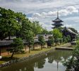 东寺又名教王护国寺,曾由著名的僧人弘法大师住持,其五重塔建筑是平安时代的遗存,曾经几度被烧毁,江户时代重新修建,保存至今,也是京都风景的代表。春天,五重塔和东寺内的八重樱交相辉映;夏季池塘中荷花盛放,非常有禅趣;秋天则是赏枫叶和银杏的胜地。每个月的21日,这里会开展古董跳蚤市场弘法市,喜欢收集老玩意的朋友可以来一探究竟。