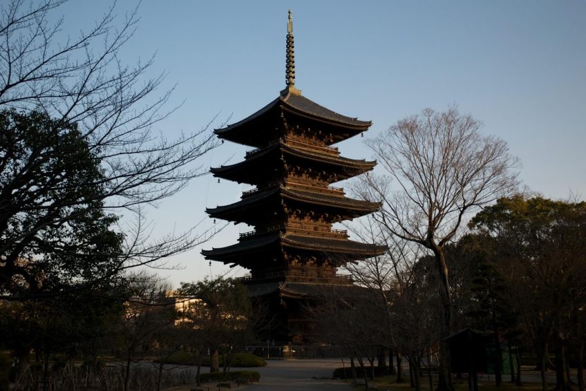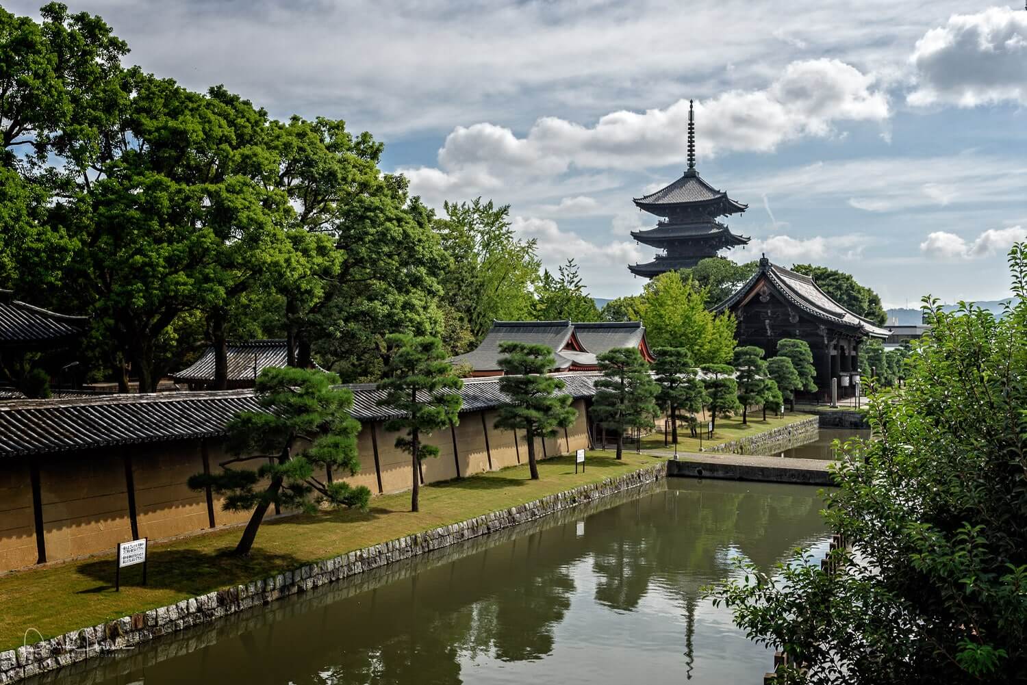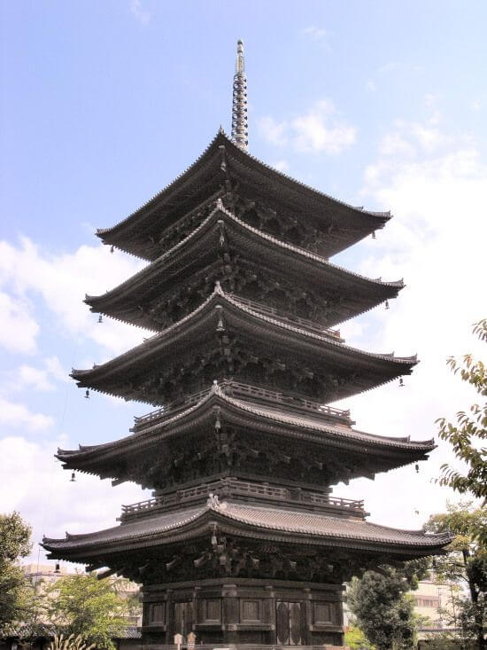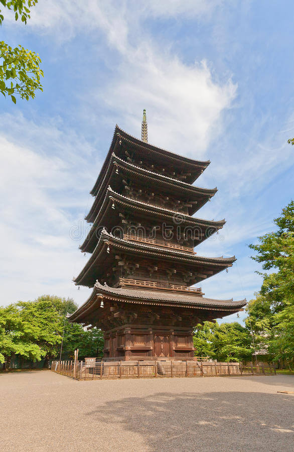 的五層寶塔Tō-ji站54.8米(180英尺)高,日本最高的塔木。它的歷史可以追溯到江戶時代,當時由德川幕府三世(今光)重建。這座寶塔過去是,現在仍然是京都的象徵。進入寶塔本身每年只允許幾天。
