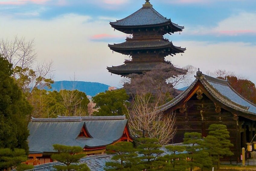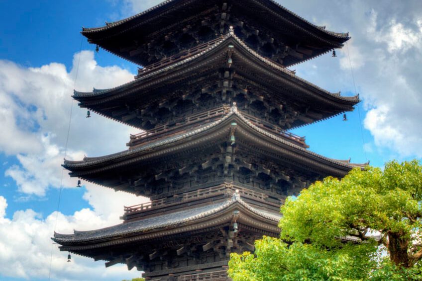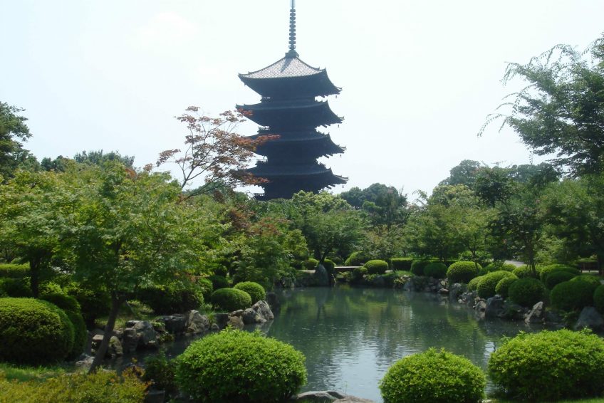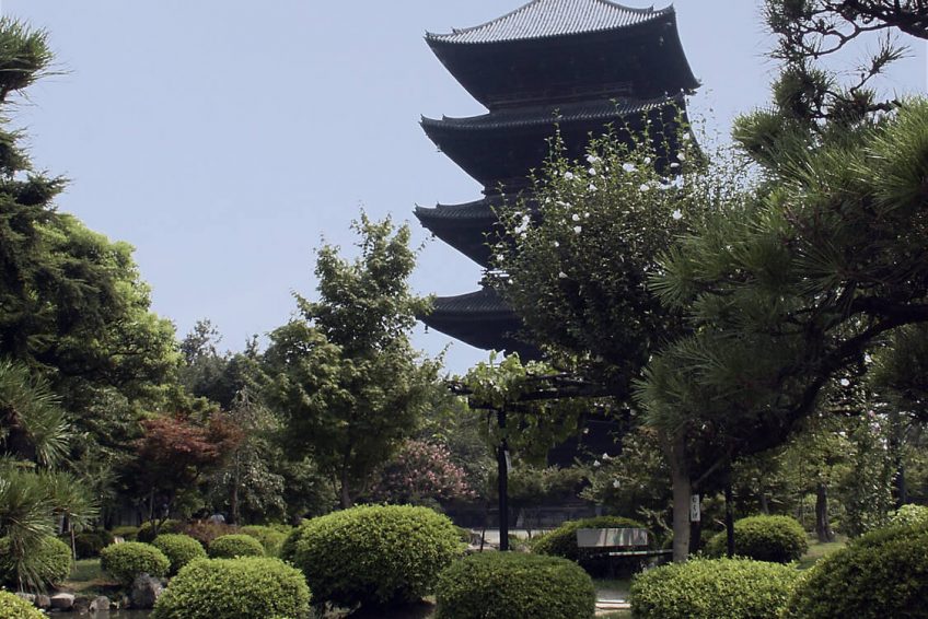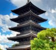 東寺又名教王護國寺,曾由著名的僧人弘法大師住持,其五重塔建築是平安時代的遺存,曾經幾度被燒毀,江戶時代重新修建,保存至今,也是京都風景的代表。春天,五重塔和東寺內的八重櫻交相輝映;夏季池塘中荷花盛放,非常有禪趣;秋天則是賞楓葉和銀杏的勝地。每個月的21日,這裡會開展古董跳蚤市場弘法市,喜歡收集老玩意的朋友可以來一探究竟。