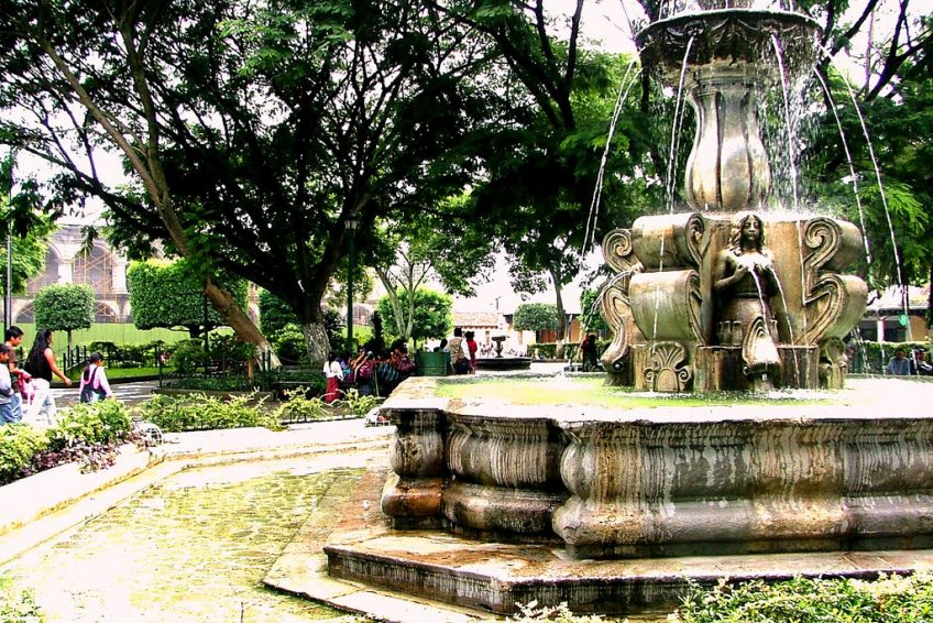 安提瓜的中央廣場很容易成為危地馬拉最美麗的地方,也是鞋匠,漫步愛好者,旅行團,冰淇淋攤販和外國遊客的活動中心。廣場的中央部分是一個可愛的噴泉,可追溯到1936年,重新創建了1738年由地震摧毀的早期版本。它毗鄰聖地亞哥大教堂,Palacio de los Capitanes Generales,Palacio del Ayuntamiento和一個名為Portal del Comercio的商業拱廊。該公園做散步或人看從公園的長凳上一個偉大的地方。到了晚上,周圍的建築物和紀念碑都被照亮了。
