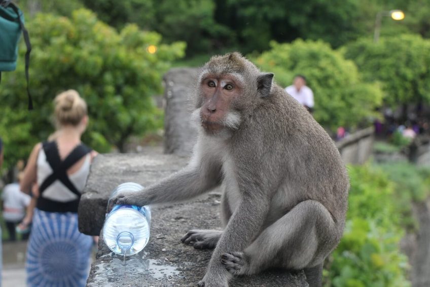 寺廟裡住著猴子,它們因搶奪遊客財物而臭名昭著。他們通常可以被說服用這些東西換水果,儘管這只會鼓勵他們偷更多的東西。