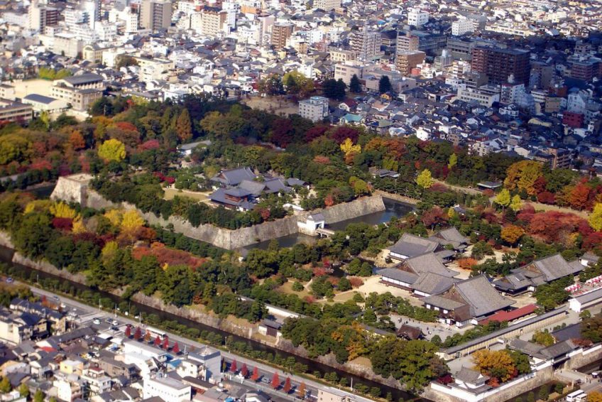 其次丸御殿是第二圈的中心建築物,從東大門進入正面的西面。御殿被築地圍牆所包圍,正門的唐門位於圍牆南側。我看到了這句話,就看到了“輪椅上”的玄關。連郭式御殿從手依次“遠武士”(和您ざむらい),“地板”(兄弟),“大廳”、“琉球蘇鐵之間”,“黑書院”(時態ょいん),“白皮書院” (小白ょいん)被稱為6個建築物有雁行排列,在走廊連接成為一體。又,當初柱的銅版是金結果,目前現存的東西遠遠比華麗的東西。大廣之間的西、黑書院的南側有日本庭園。在遠武士的北面,有一座叫“廚房”和“禦清所”的建築物。現在,成為扁柏皮板的唐破風車附近的屋頂,是由於明治修理而從瓦礫上變成了扁柏的墊子。