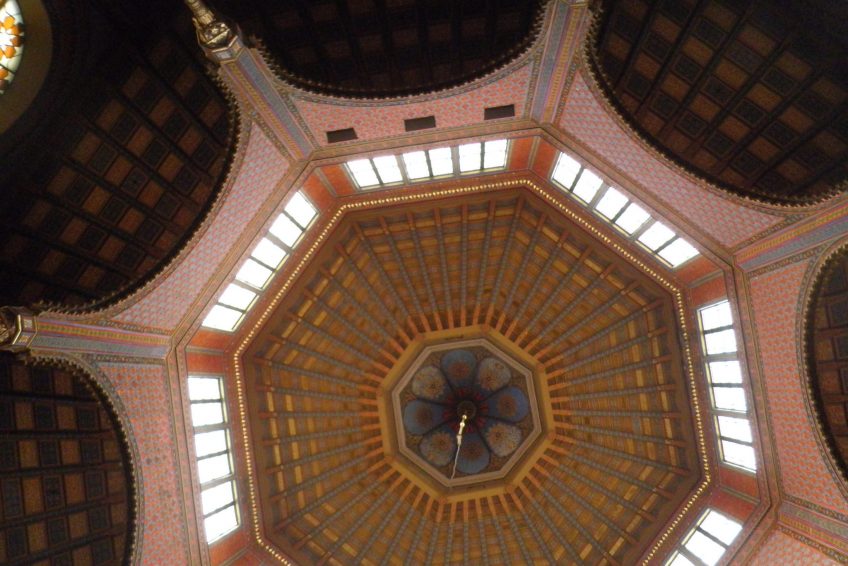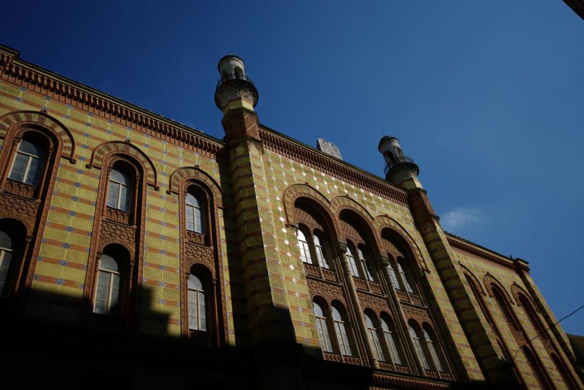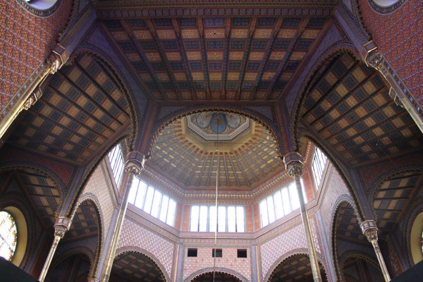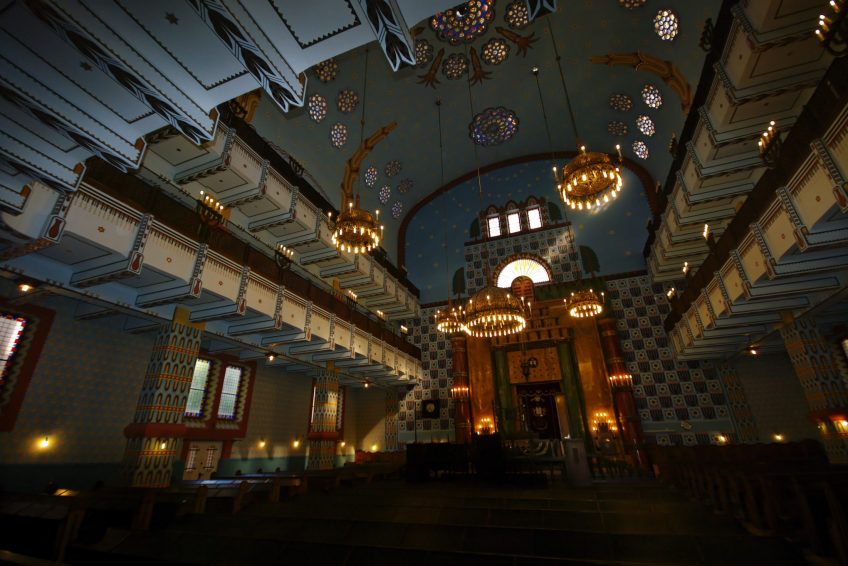 這個摩爾復興的猶太教堂有大約八面,內部在寫作時非常需要一個良好的修復,它有一個八角形,一個陽台和圓頂的猶太教堂,錯綜複雜的圖案和繪畫古老的伊斯蘭風格,非常精美。
