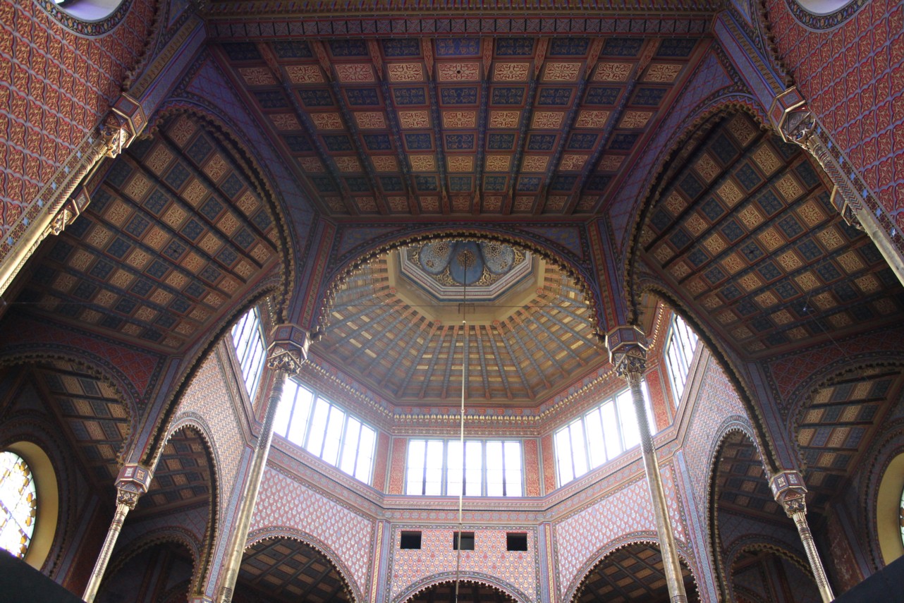 这个摩尔复兴的犹太教堂有大约八面,内部在写作时非常需要一个良好的修复,它有一个八角形,一个阳台和圆顶的犹太教堂,错综复杂的图案和绘画古老的伊斯兰风格,非常精美。
