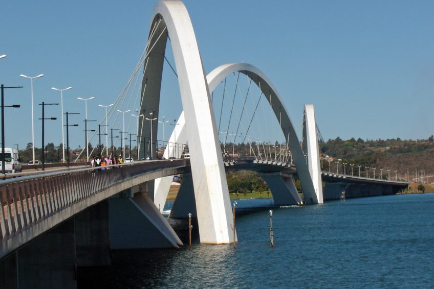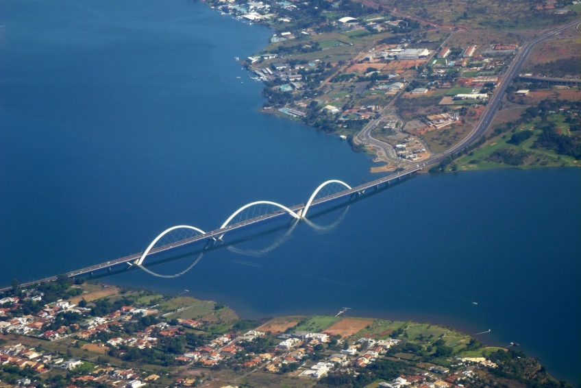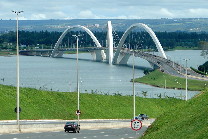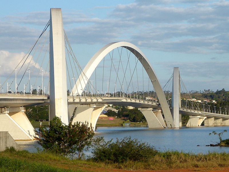 Juscelino Kubitschek橋,也稱為總統JK橋,JK橋或葡萄牙語Ponte JK,穿過巴西DF的巴西利亞的Paranoá湖,將試點計劃的中心連接到湖的南部(最多的一個)巴西利亞的專屬區域); 。它在很短的時間內成為巴西最受歡迎的地標之一。
