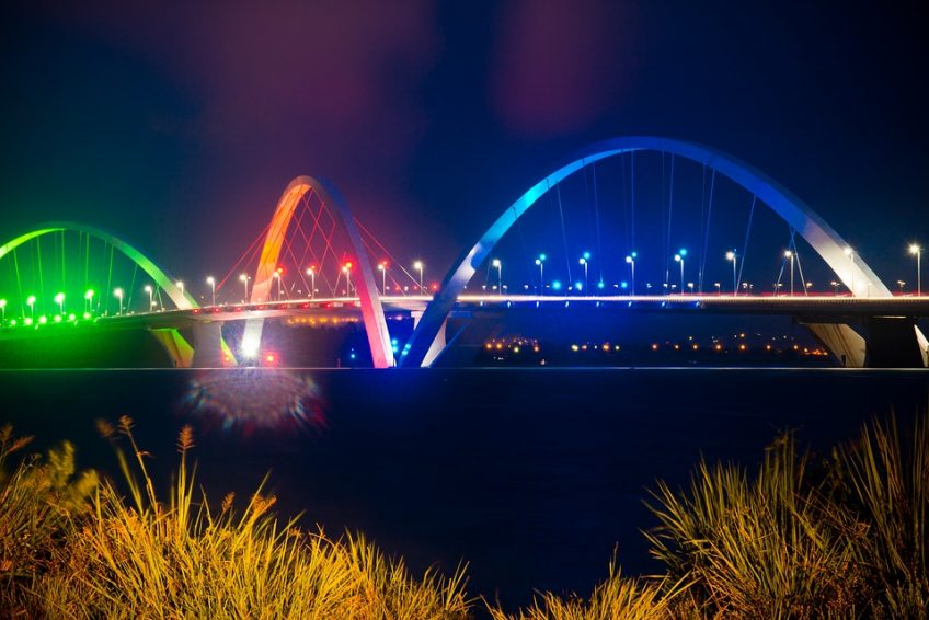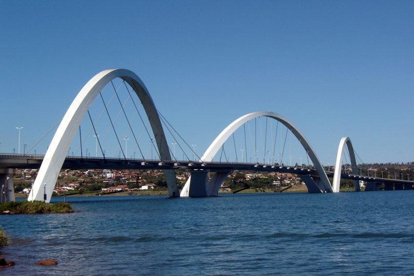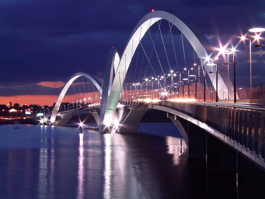 该桥于2002年12月15日由来自里约热内卢的巴西建筑师Alexandre Chan创建。 这座桥的建造使其与这座现代化城市的其他美丽而精致的建筑相匹配。 毫无疑问,不寻常的形状使“Juscelino Kubitschek Bridge“被认为是世界上最美丽的桥梁之一。这座桥是另外两座桥梁的旁边,它是缓解该地区交通的基础,该地区拥有10万辆汽车的通量。这项工作的成本约为1.6亿雷亚尔