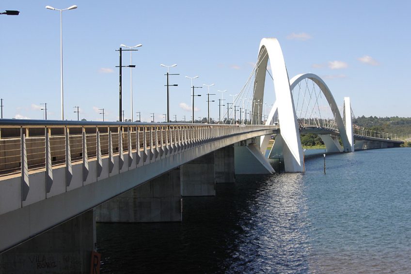 該橋於2002年12月15日由來自里約熱內盧的巴西建築師Alexandre Chan創建。這座橋的建造使其與這座現代化城市的其他美麗而精緻的建築相匹配。毫無疑問,不尋常的形狀使“Juscelino Kubitschek Bridge“被認為是世界上最美麗的橋樑之一。這座橋是另外兩座橋樑的旁邊,它是緩解該地區交通的基礎,該地區擁有10萬輛汽車的通量。這項工作的成本約為1.6億雷亞爾