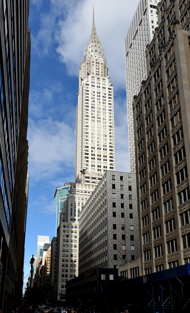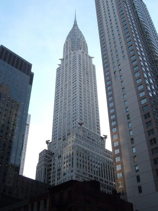 克莱斯勒大厦(英语:Chrysler Building)是美国纽约市的一座装饰风艺术式的摩天大楼,位于曼哈顿东部42街与莱辛顿大道的交叉口。克莱斯勒大厦的高度为1,046英尺(319米),在1931年帝国大厦完工前曾保持了11个月全世界最高建筑的纪录。 虽然大厦内部由金属结构支撑,但克莱斯勒大厦目前仍被认为是全世界最高的砖造建筑物。在世界贸易中心倾倒后,克莱斯勒大厦一度再次成为纽约市的第二高楼,直到2008年美国银行大厦365.8米(1,200英尺)高的尖顶落成后,使得克莱斯勒大厦的排名下降,成为纽约市的第三高楼。此外,2007年落成的纽约时报大厦与克莱斯勒大厦的高度相同,在被世贸中心一号大楼超越后,两座建筑物的高度排名同样下落,目前共居第四名。
