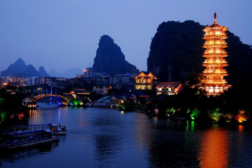 兩江四湖是桂林山水的名片之一,它有可與威尼斯媲美的環城水系。乘船遊覽,可以飽覽桂林市區的精華景觀。