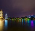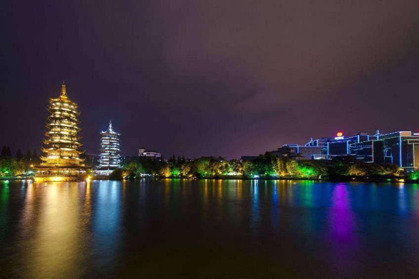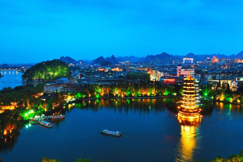两江四湖是桂林山水的名片之一,它有可与威尼斯媲美的环城水系。乘船游览,可以饱览桂林市区的精华景观。