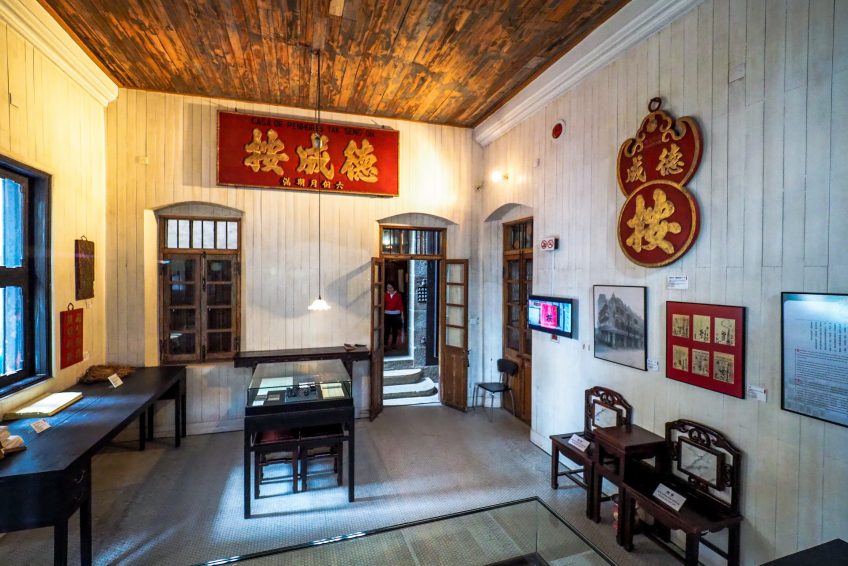 遗产展览包括两个街区。前面的街区是一个三层的当铺和银行,而后面的街区是一个七层的仓库。典当行的底层和仓库的部分楼层已经向公众开放。当铺入口处有一个大屏幕,后面是一个高柜台和一个安全的笼子。