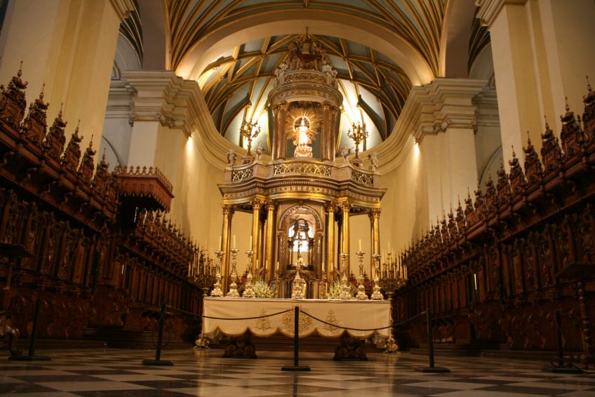 已经在利马的基础日(1535年1月18日)举行了利马大教堂的奠基仪式。虽然第一座教堂非常简单,但由于大量地震和扩建所造成的损坏而不断进行必要的维修。17世纪的另外三个中殿和一个小教堂给了利马一个巨大的巴洛克式大教堂,反映了天主教会在殖民时代的重要性。