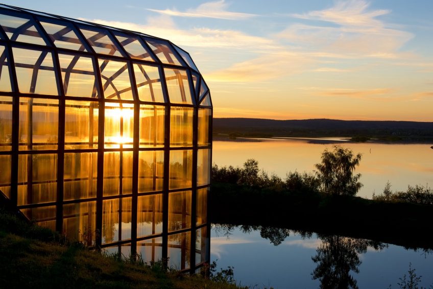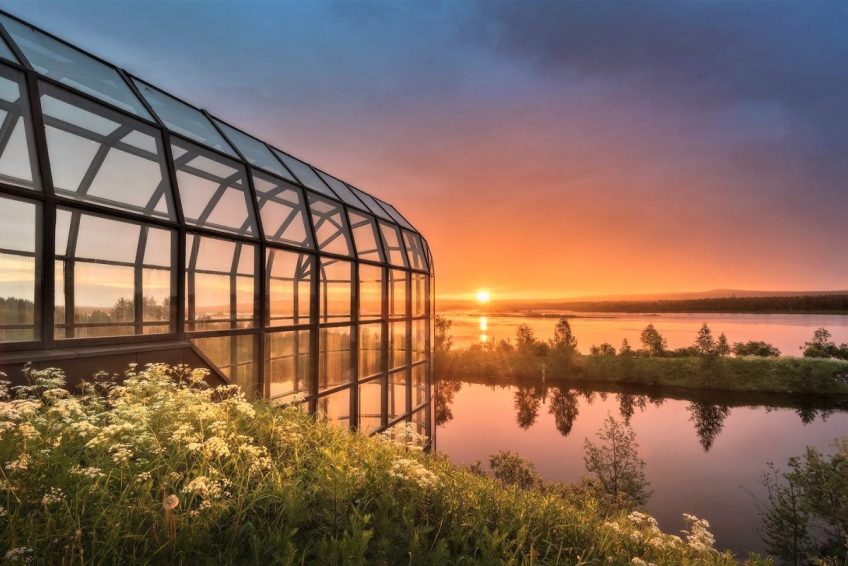 建筑物中使用了大量的当地天然材料:地板由Perttaus花岗岩 – 芬兰最硬的花岗岩 – 和石灰洗过的拉普兰松木制成。 椅子由桦木和驯鹿皮制成。