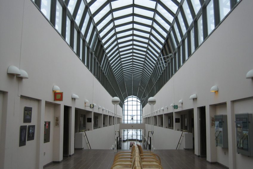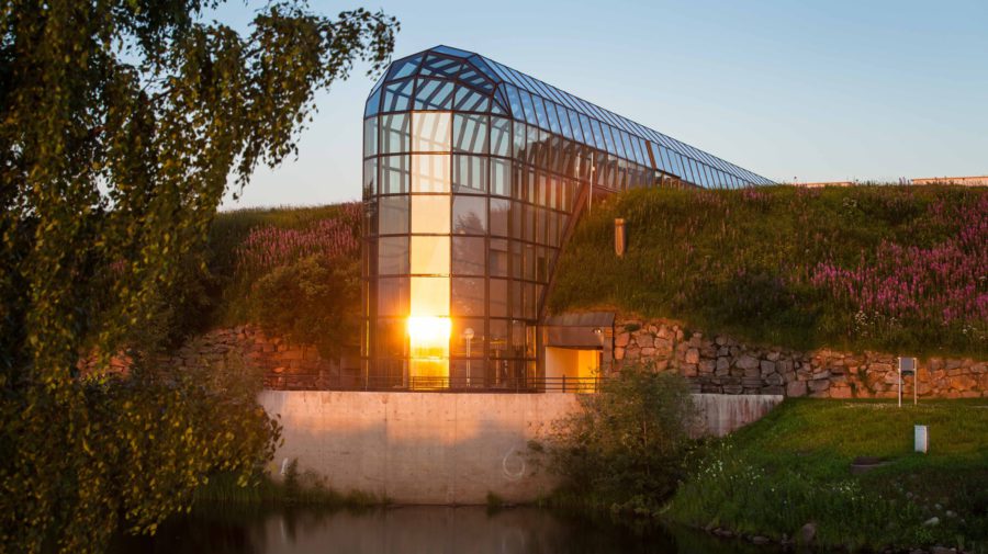 博物馆最引人注目的部分是玻璃走廊,总长172米,由30米宽的Kittilä高速公路解剖。 管道作为“通往北方的门户”,因为入口门厅位于南端,客人在进入时向北行驶。展览空间位于地下,模仿北方动物从苛刻的地方掩护 寒冷的冬天,在雪下挖洞。