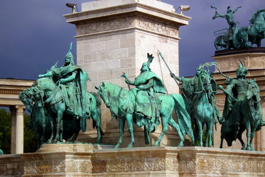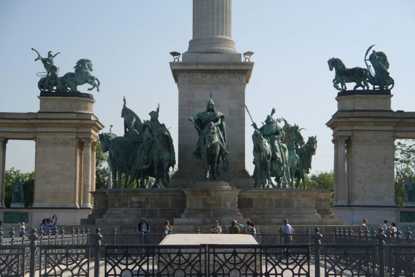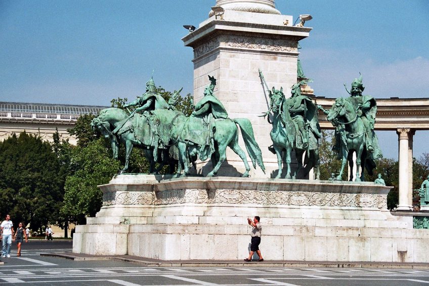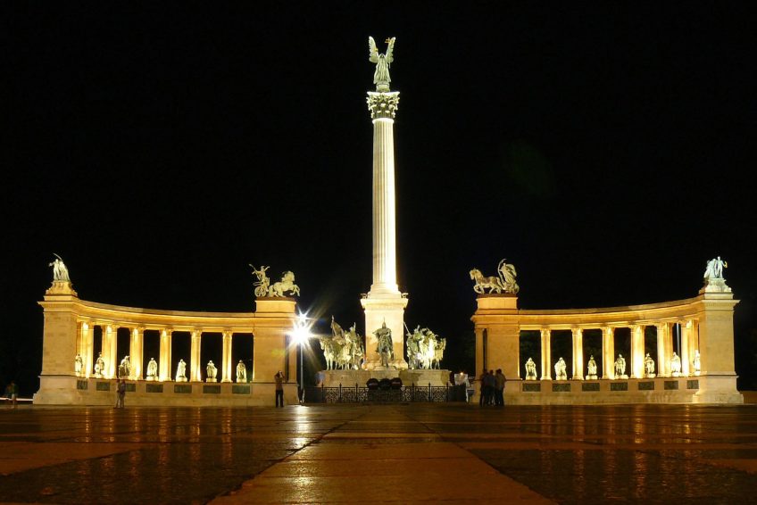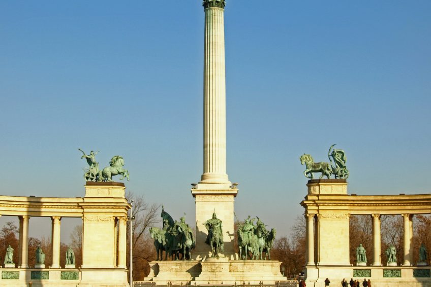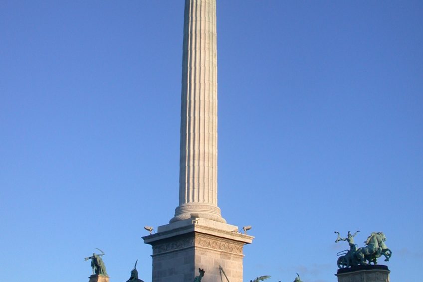 千年紀念碑的概念,有時被稱為千禧紀念碑,是在1895年匈牙利政府設想為該國的英雄建立國家紀念碑時構想的。這座紀念碑是895 年慶祝馬扎爾人征服1000週年的主要景點之一。紀念碑於1896年最後一年舉行的慶祝活動中落成。儘管實際上還遠未完成。建築將持續到1929年。紀念碑由奧匈帝國建築師Albert Schickedanz設計。雕塑由GyörgyZala設計,由幾位不同的匈牙利雕塑家雕刻,包括Zala本人。