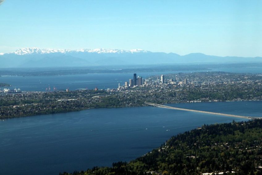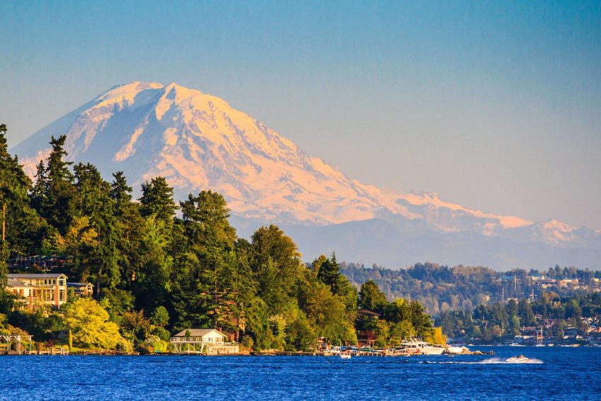 华盛顿湖是西雅图市附近的一个大型淡水湖。它是金县最大的湖,也是华盛顿州第二大的天然湖,仅次于切尔西湖。它与西部的西雅图、东部的贝尔维尤(Bellevue)和柯克兰(Kirkland)、南部的伦顿(Renton)和北部的肯摩尔(Kenmore)接壤,并包围了美世岛(Mercer Island)。这个湖是由北部的萨马米什河和它南边的雪松河而来的。