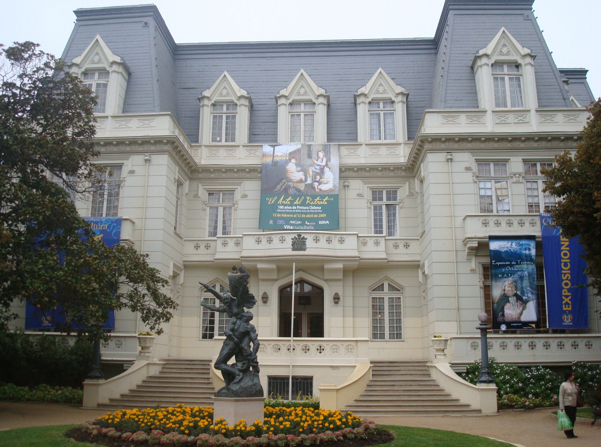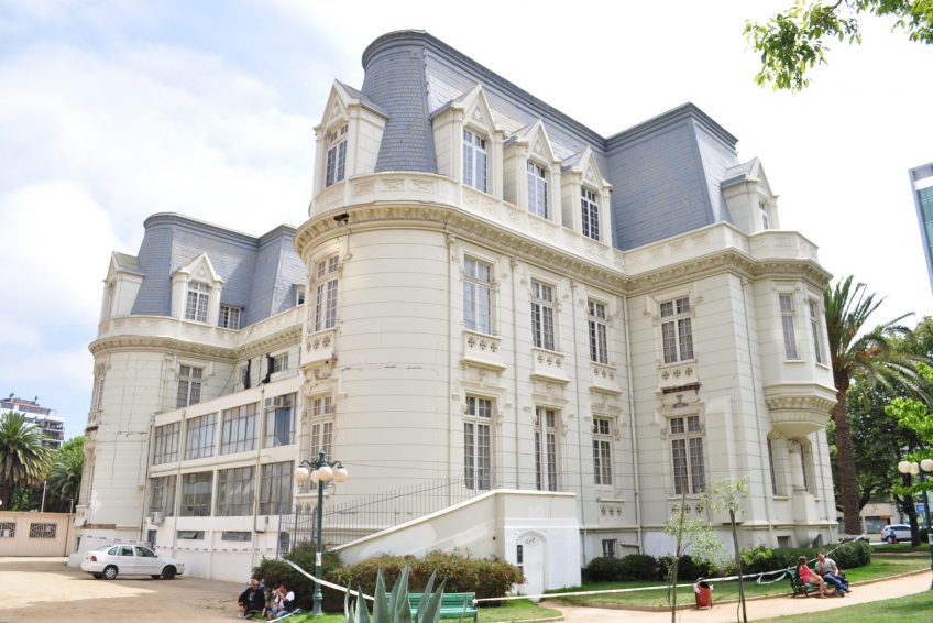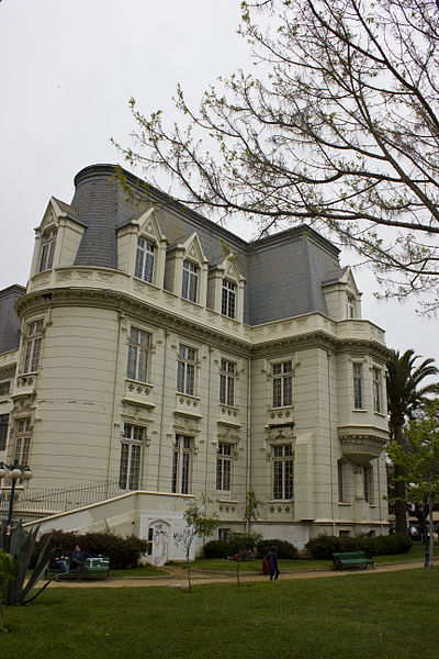 本专业谁曾来智利于1895年,引进新文艺复兴,新古典主义,格鲁吉亚都铎风格,解除了二层楼,阁楼屋顶和基地,其特点是正在开展关于中央机构,这是两个突出的机构入口区域,三个诺曼拱门的门廊配置,通过两个对称的楼梯,在风扇中访问它。