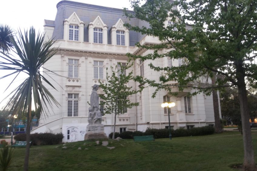 本專業誰曾來智利於1895年,引進新文藝復興,新古典主義,格魯吉亞都鐸風格,解除了二層樓,閣樓屋頂和基地,其特點是正在開展關於中央機構,這是兩個突出的機構入口區域,三個諾曼拱門的門廊配置,通過兩個對稱的樓梯,在風扇中訪問它。