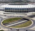 “混凝土巨頭”通過他們的傾向建立起來,作為發展新鋼結構和建設性物流的概念的指揮因素。在混凝土結構周圍,安裝了60個鋼製桁架柱,具有兩個主要功能:減少支架的振動並支撐新的屋頂結構。
