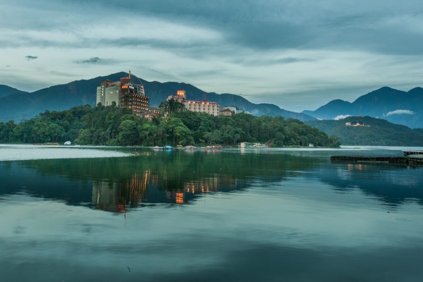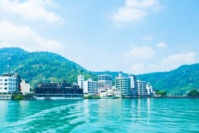 日月潭位於台灣中部的南投縣。它是該國最大的水域,面積約為7.93平方公里(3.06平方英里)。四面環山,海拔748米(2,454英尺),水深約27米(89英尺)。