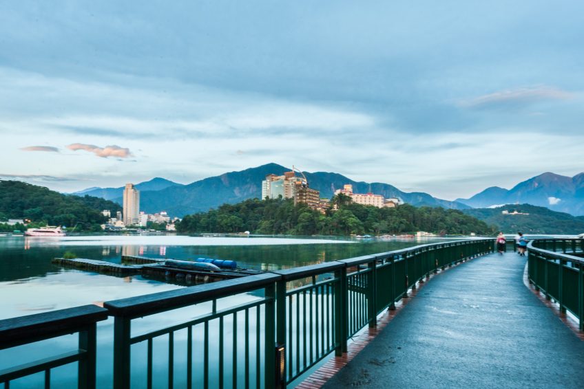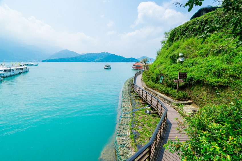 这个风景如画的湖泊被指定为台湾十三个国家级风景区之一,因其形状而得名。据说日月潭的东侧类似于太阳,而西侧则类似于月亮。