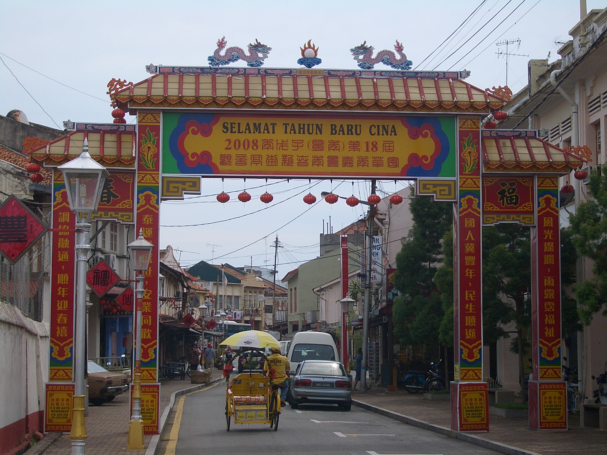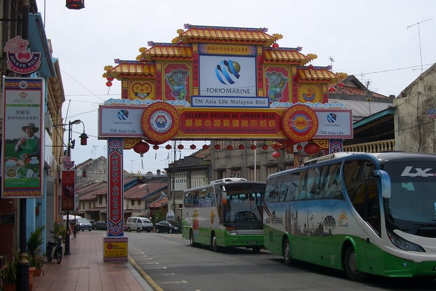 馬六甲唐人街似乎沒有足夠清晰,也沒有官方標誌將其標記為唐人街。然而它確實有一個拱門,雖然它是雞場街。