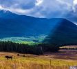 喀納斯位於新疆北部的阿勒泰地區,是集冰川、湖泊、森林、草原、牧場、河流、民族風情、珍稀動植物於一體的綜合景區,被譽為“東方瑞士、攝影師天堂”。 “喀納斯”是蒙古語,意為“美麗富饒、神秘莫測”,在這裡壯觀的冰川映襯著寧靜的湖水,茫茫的草原包容著幽深的原始森林。神秘的湖怪、古樸的圖瓦人、變換的湖水、眩人的風景都讓人痴迷。在喀納斯,主要遊覽喀納斯湖、禾木村、白哈巴村這三個地方。喀納斯湖是核心景點,有神秘的喀納斯湖怪和神仙灣、臥龍灣、月亮灣。禾木和白哈巴都是當地人的村落,頗有瑞士小鎮的風采,是人間仙境,許多人認為這兩處村落才是喀納斯的精華。喀納斯風景名勝區不僅自然資源和生物物種非常豐富,而且旅遊環境和人文資源也別具異彩,喀納斯具北國風光之雄渾,又具有南山水之嬌秀,加之這裡還有“雲海佛光” 、“變色湖”、“浮木長堤”、“湖怪”等勝景、絕景,可謂西域之付佳景、仙景。湖的北面是白雪皚皚的奎屯山、高聳如雲的友誼峰。湖周重巒疊嶂,山林尤如畫屏。不同的植物群落層次分明,色彩各異。每至秋季更是萬木爭輝:金黃、殷紅、墨綠各呈異彩。林中灌木葉茂,枯葉朽木上苔蘚、野草遍生。林間空地草甸如菌,山花鮮豔。風靜波平時湖水似一池翡翠,隨著天氣的變化又更換著不同的色調,自晨至也換變著風采。每當煙雲繚繞,雪峰、春山若隱若現,恍若隔世。七八月份雨後清晨登上湖南段的駱駝峰則可觀纜佛光奇景。