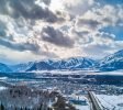 村里大概有几百座小木屋,沿村是一条环形的公路,木屋整齐的排列在公路两侧。而木屋的院子里和周围则是开阔的草坪,牛羊在草坪间自由徜徉,置身其中感觉非常清新放松。草坪背后,则是一片片小山,山上长满葱葱郁郁的树木,秋天时,这些树木的叶子变黄,山顶则覆盖起了积雪,更是拍照的好时机。