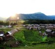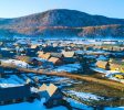 村里大概有幾百座小木屋,沿村是一條環形的公路,木屋整齊的排列在公路兩側。而木屋的院子里和周圍則是開闊的草坪,牛羊在草坪間自由徜徉,置身其中感覺非常清新放鬆。草坪背後,則是一片片小山,山上長滿蔥蔥鬱鬱的樹木,秋天時,這些樹木的葉子變黃,山頂則覆蓋起了積雪,更是拍照的好時機。