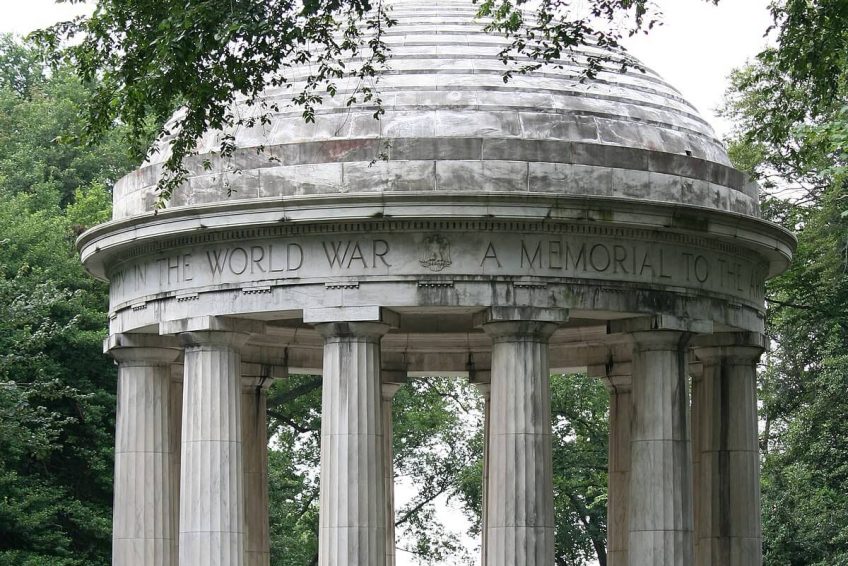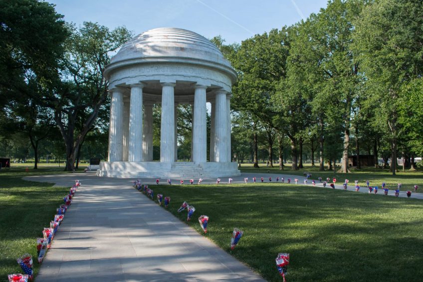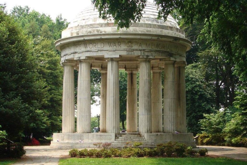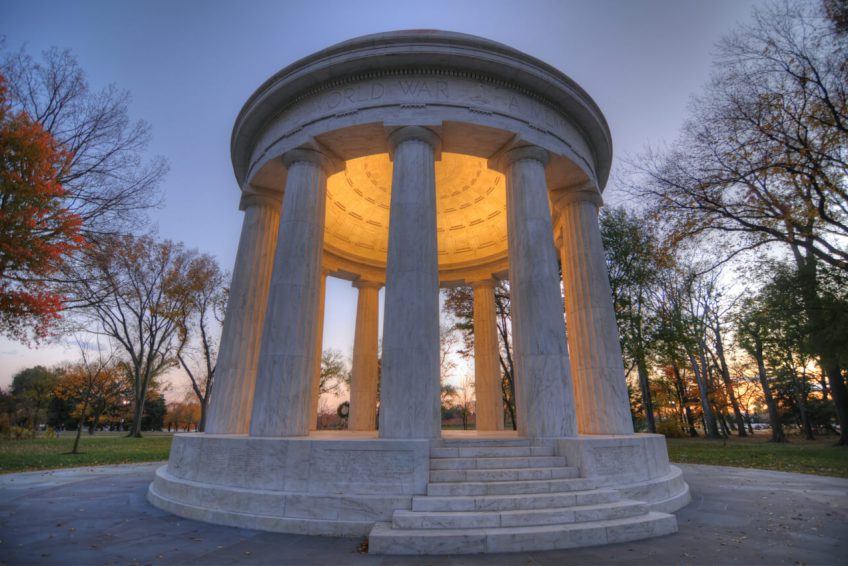 如标题所示,这个纪念碑代表第一次世界大战的战士,他们战斗并献出了自己的生命。纪念碑矗立在西波托马克公园,离独立大道不远,有一片树林。1924年6月7日,国会通过一项法案,授权修建纪念碑的资金由该地区的组织和个人公民提供。纪念馆的建设始于1931年春,纪念馆于1931年11月11日(停战日)由赫伯特·胡佛总统落成。这是在西波托马克公园(West Potomac Park)建立的第一个战争纪念碑,它是林肯纪念堂(Lincoln memorial)附近的国家广场(National Mall)的一部分,也是国家广场(National Mall)上唯一的地方纪念碑。