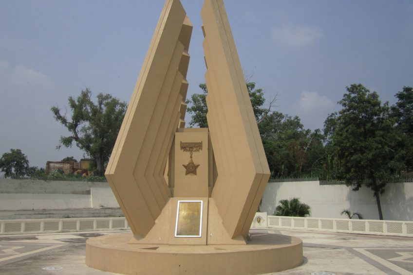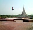 國家烈士紀念館位於達卡西北約35公里處的薩瓦爾,象徵著為解放孟加拉國犧牲生命的烈士的勇敢和犧牲。 1978年6月,該項目的設計舉行了全國性的競賽。在57個競爭對手中,選擇了建築師Syed Moinul Hossain的設計方案。主要紀念碑由七個等腰三角形平面組成,每個平面的高度和底部各不相同。最高的基部具有最小的基部,而最寬的基部具有最低的高度。飛機在中間折疊並一個接一個地放置。結構的最高點達到150英尺。這種獨特的飛機佈置創造了一種結構,從不同的角度看,它似乎改變了它的結構。建築師使用混凝土作為紀念碑,而建築群的所有其他結構和路面都是用紅磚砌成的。使用不同的材料增加了紀念碑的重力。