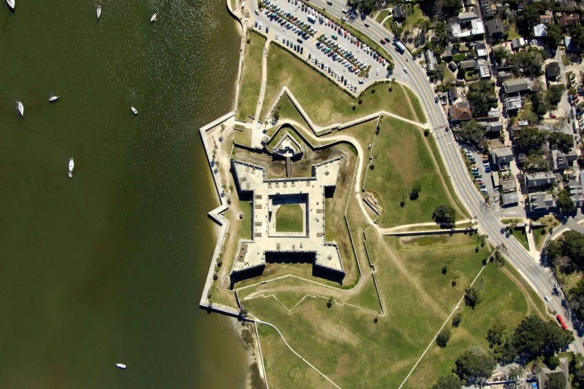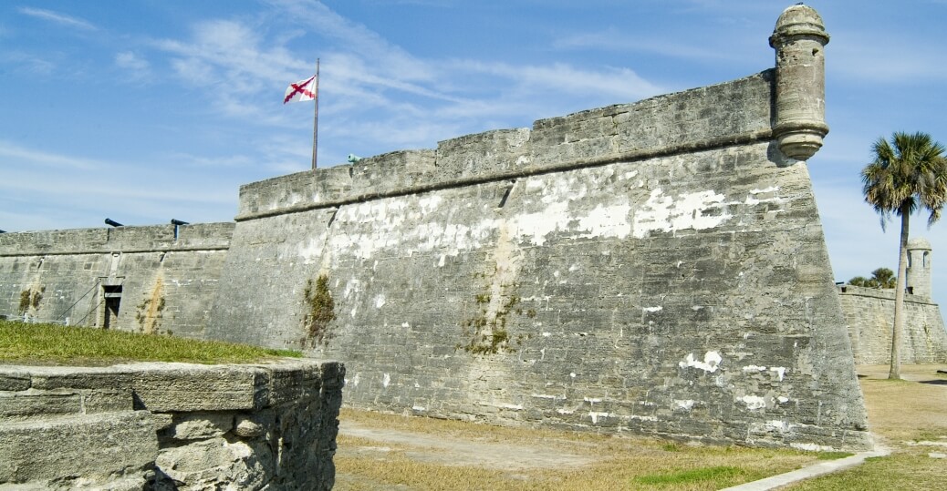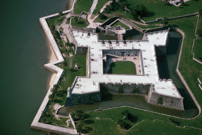 圣马科斯城堡是美国大陆上最古老的石砌城堡。这座城堡位于佛罗里达州圣奥古斯丁市马丹萨斯湾的西岸,由西班牙工程师伊格纳西奥·达萨设计。建设始于1672年,在西班牙海军上将和征服者佩德罗·梅内德斯·德·阿维莱斯(Pedro Menendez de Aviles)建立这座城市107年后,当时佛罗里达是西班牙帝国的一部分。1668年,英国私掠船师罗伯特·塞尔斯(Robert Searles)进行了毁灭性的突袭,之后总督弗朗西斯科·德拉格拉和德拉维加下令建造这座城堡。在Guerra继任者Manuel de Cendoya的管理下进行,和第一块coquina石头在1672年被埋设。目前的堡垒的核心部分在1695年完工,尽管在过去的几个世纪里,它经历了很多的改造和翻新。
