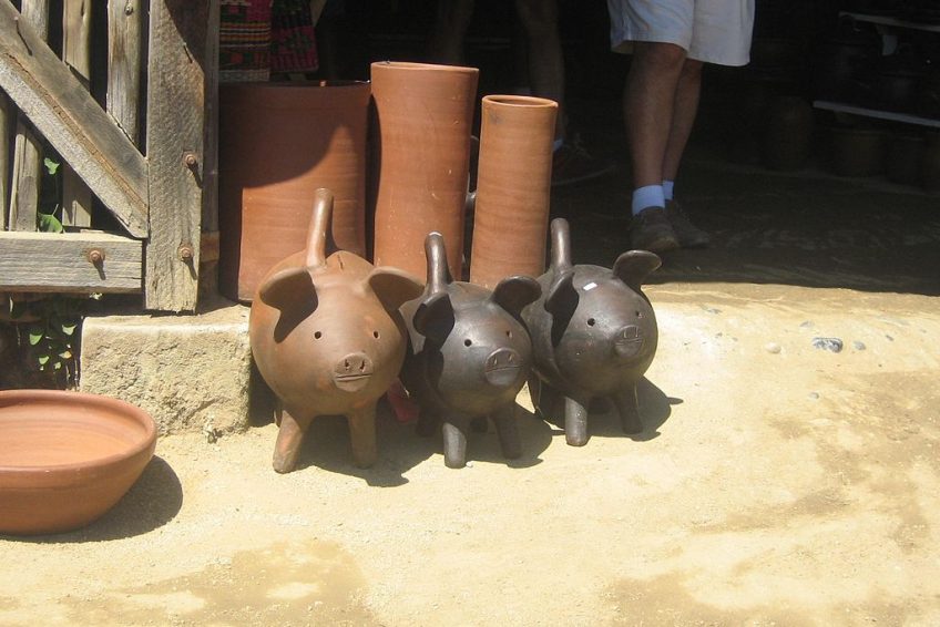 我買了一個我愛上的著名粘土豬(chanchito)。有很多東西可供選擇:你可以得到一個耶穌誕生的展示或轉向頭,燭台,碗,水壺,烏龜,消防栓……選擇是無止境的。