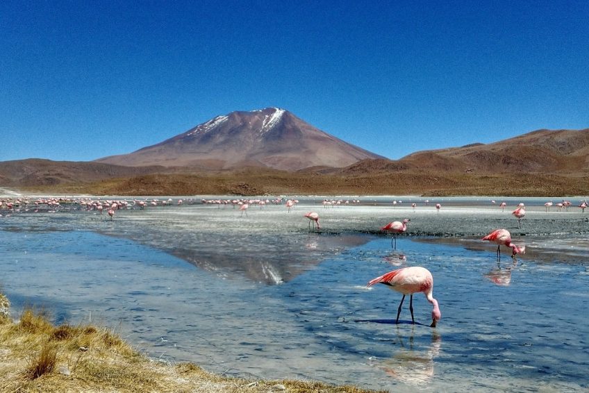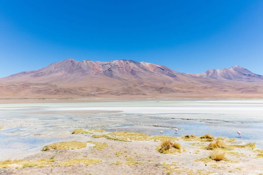 Laguna Hedionda(西班牙语为“臭水湖”)是玻利维亚波托西省NorLípez省的一个盐湖。 值得注意的是粉红色和白色火烈鸟的各种迁徙物种。
