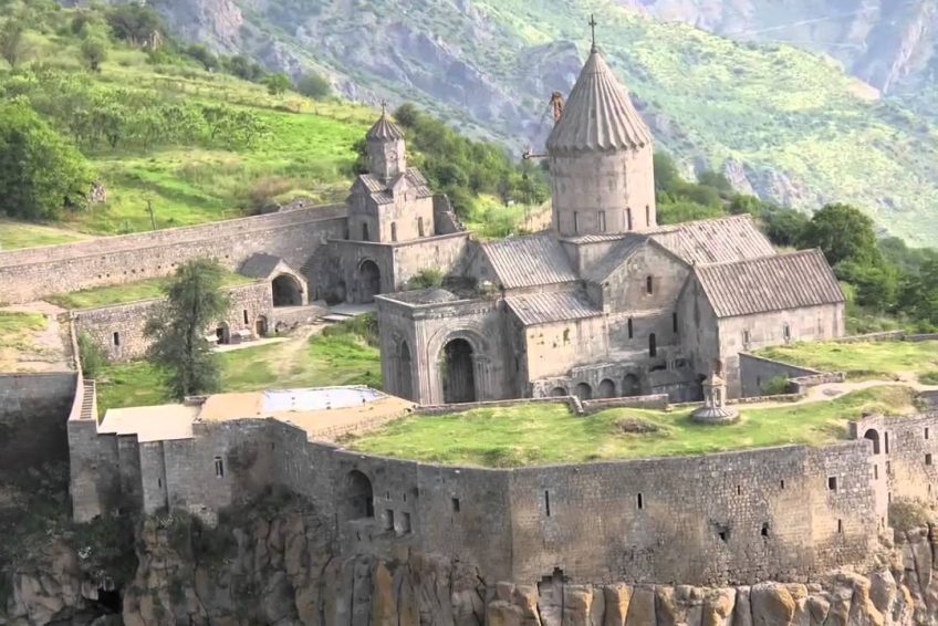 Tatev修道院位於亞美尼亞東南部,位於古亞美尼亞Syunik地區,距Goris市不遠,距Yerevan 280公里。塔捷夫高原從前基督教時代就開始使用了,這裡有一座異教徒的寺廟。公元4世紀亞美尼亞被基督教化後,這座寺廟被一座樸素的教堂所取代