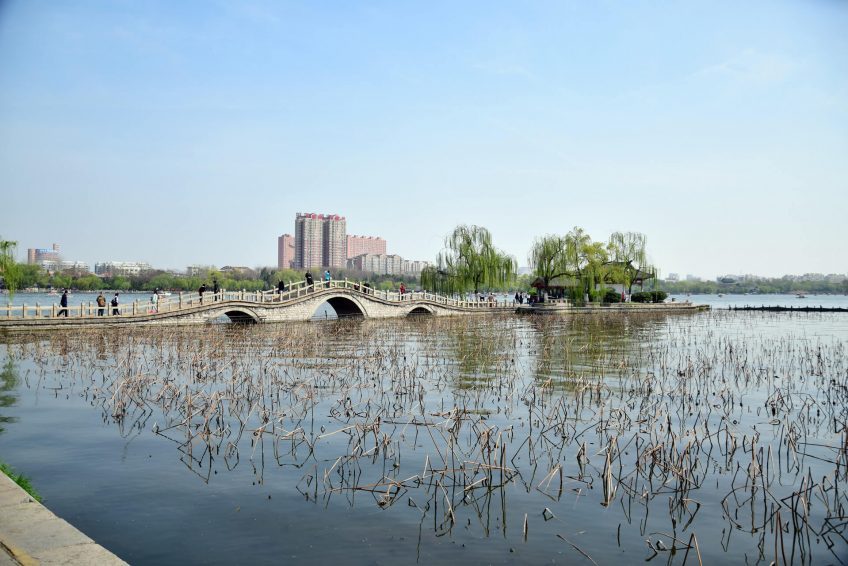 大明湖,位于山东省济南市市中心偏东北处、旧城区北部,是由济南众多泉水汇流而成,湖面58公顷,公园面积103.4公顷,平均水深2米左右,最深处达4.5米,是繁华都市中一处难得的天然湖泊,与趵突泉、千佛山并称为济南三大名胜,也是泉城济南重要的风景名胜、开放窗口和闻名中外的旅游胜地,素有“泉城明珠”的美誉。大明湖景色优美秀丽,湖水水色澄碧,是国家AAAAA级旅游景区——天下第一泉风景区的核心组成部分之一。 2009年,大明湖荣膺中国世界纪录协会“中国第一泉水湖”称号。