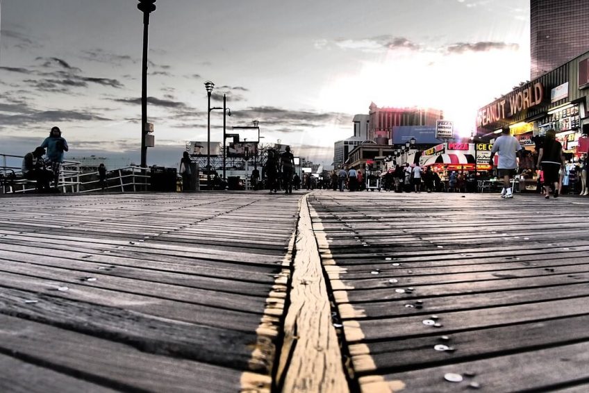 新泽西州是美国大多数木板人行道的所在地,几乎每个城镇沿泽西海岸地区各有一个木板路各种景点,娱乐、购物、餐饮、迷你高尔夫球场、拱廊,水公园各种游乐设施,包括水幻灯片,懒惰的河流,波池,等,和游乐园托管游乐设施和景点包括过山车,旋转木马,摩天轮,碰碰车,茶杯等。