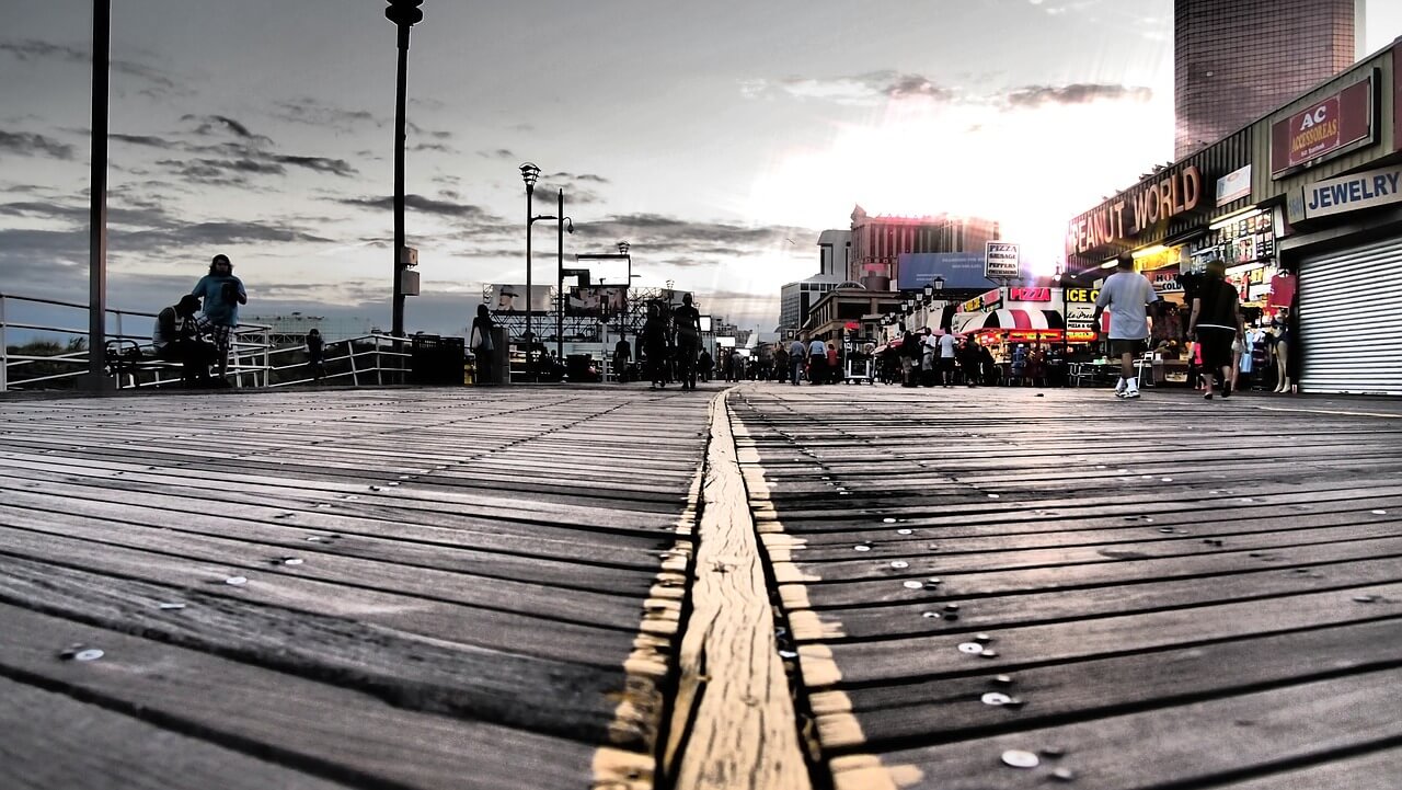 这条2.5英里(4公里)长的木板路位于海洋城,有许多经典景点和新添加的景点。从几英里外就能看到140英尺(42米)高的摩天轮,从上面可以看到海洋城和周围社区的景色。其他游乐项目包括过山车、旋转木马、碰碰车、水上运动和11个迷你高尔夫球场。商店出售纪念品和零食,如棉花糖、爆米花、披萨和冰淇淋。其他的木板人行道活动包括享受日出与悠闲的散步,轻快的慢跑,自行车旅行,乘坐萨里车,或在众多的海边咖啡馆之一的一顿饭。