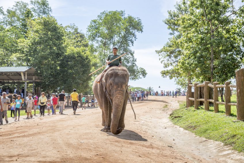 孤儿院的大象不会受到任何形式的压力,虐待或威胁,并且由一群数量超过100名的员工(包括一群驯象师)提供支持。