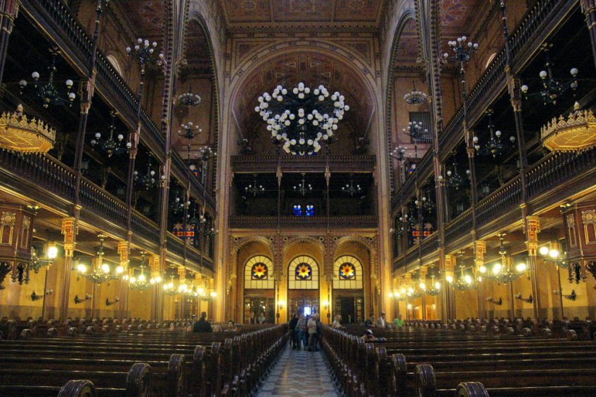 位於布達佩斯市中心的世界第二大猶太教堂必須在不對稱地段建造,以便將方舟放置在東方。在某種程度上,如果我們從Muzeum korut(國家博物館那裡)到達第7區,它就會隱藏在我們的眼前然而,即使面對一個小廣場而不是林蔭大道,其設計師的才華也體現在建築的令人印象深刻。 Frigyes Feszl和LudwigFďż˝rster使用受穆斯林建築影響的東方拜占庭風格(摩爾人風格)在大都市中心創作了他們的傑作。猶太教堂的奉獻是1859年9月6日的一件大事。它可以容納3000名坐著的人和大約2000名常住人。這裡舉行了重大活動,如1896年5月匈牙利征服1000週年紀念活動,19世紀匈牙利重要人物的紀念活動,禮拜儀式,風琴或Klezmer音樂會等。到今天,Dohany猶太教堂仍然是匈牙利Neolog猶太人最重要的宗教中心。