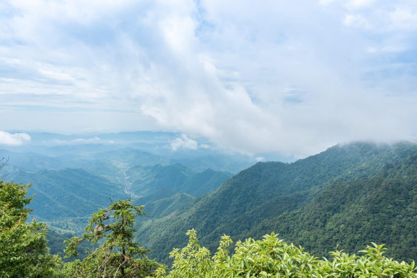 天目山位于浙江省临安市境内,有东西两峰遥相对峙。东峰大仙顶海拔1480米,西峰仙人顶海拔1506米,两峰各天成一池,宛如双目仰望苍穹,故得名天目山。