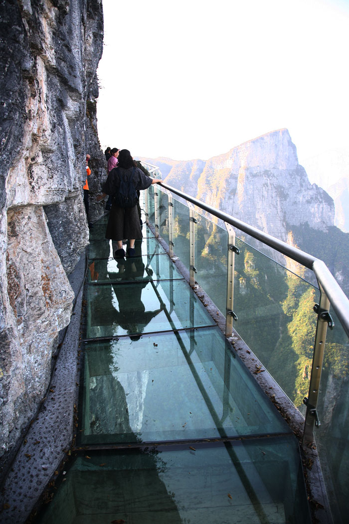 天門山玻璃崖,它掛在西門天山上,長60米,寬1.6米,最高海拔1430米,是湖南省張家界天門山風景區後懸掛的懸崖小路沿著懸崖橫穿山谷,桂木橋接連嘗試著勇往直前。