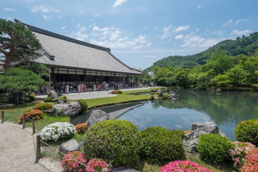 天龍寺是位於京都府京都市右京區嵯峨天龍寺的“臨濟宗天龍寺派大山院”。山號是靈龜山。寺號的正確說法是靈龜山天龍資金聖禪寺。正尊是釋迦如來,開基(創立者)是足利尊氏,開山(第一代住持)是夢窗疏石。作為與足利將軍家和後醍醐天皇相關的禪寺,被認為是京都五山的第一名。作為“古都京都的文化遺產”被列入世界遺產。