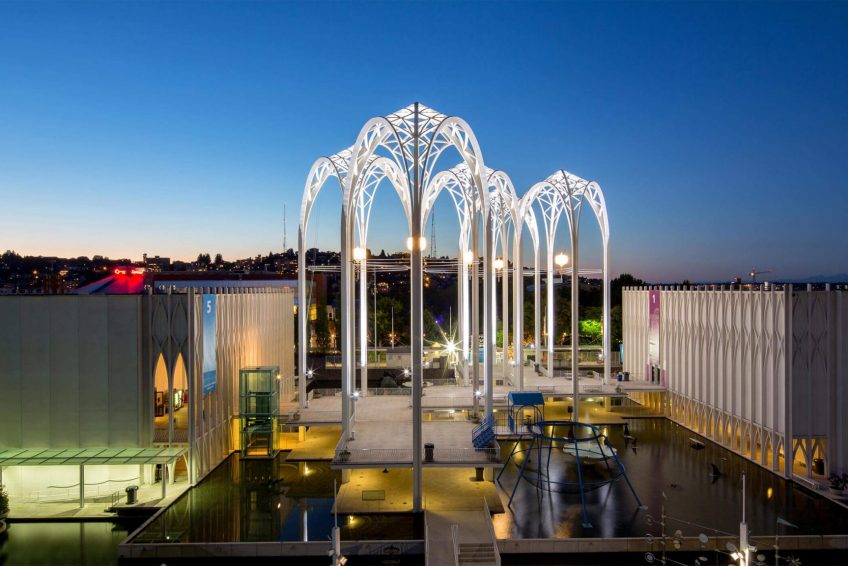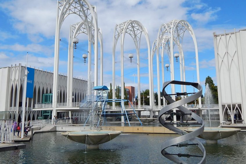 该中心最初的建筑是由山崎实为1962年西雅图世界博览会设计的美国科学馆。最终成为太平洋科学中心、科学世界、艺术、娱乐、商业和工业的世界,明天将是世界博览会上为大众准备的五大主题领域。科学的世界位于游乐场的最南端,在太空针的西面,位于拱门下,这是一个很容易辨认的地标。近年来,太平洋科学中心(Pacific Science Center)已成为一个非营利组织,而不是从西雅图市租来的。