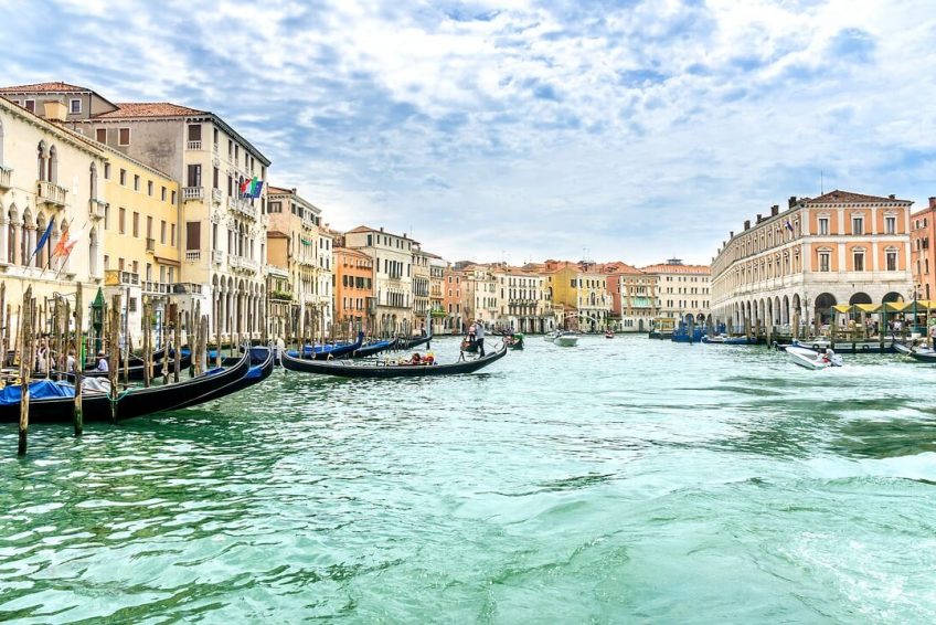 大多數宮殿都是在沒有人行道的水里建造的。因此,人們只能乘船遊覽大運河上的建築物。